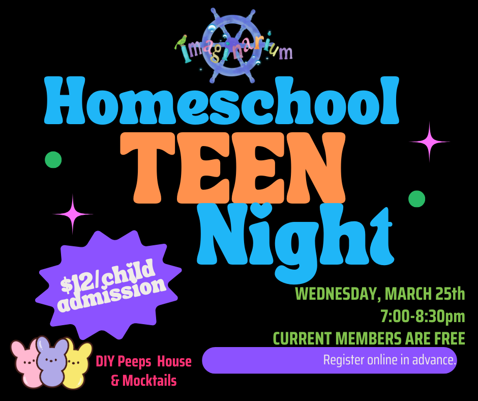 Calling all Homeschool Teens! Join us on WEDNESDAY, MARCH 25th 7:00-8:30pm for Design your own PEEP Houses and Create a fruity mocktail! Bring a friend or two!